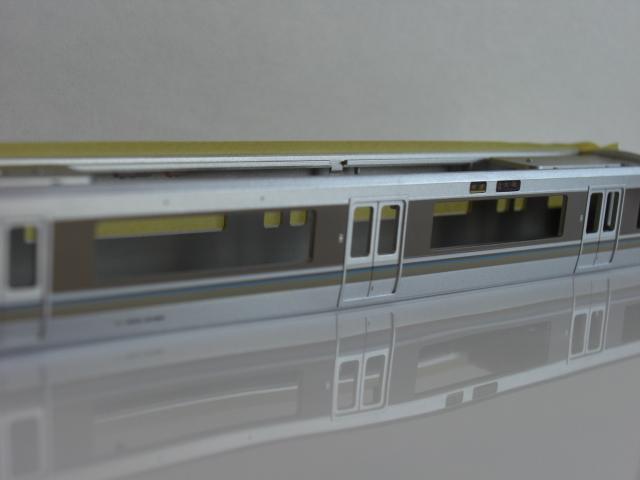 これを4両分+両サイド、計8回するわけですが自分は1両もしくは2両、しかも片方ずつクリアー→乾燥→銀塗装→乾燥て感じで進めていったので時間がかかりました。まだ中間車は終わってません。