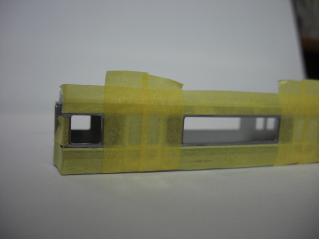 その後、先頭車2両は塗装し終えたのでボディはここまでで窓ガラスをちょっといじりました。