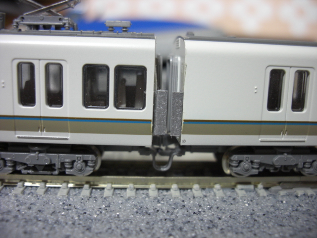 どうでしょうか?かなり見栄えが良くなった気がします。まだ試しに付けてみた段階なのでこの3種類の車両のみですが、付ける前よりも連結面に目がいくようになりました。でも、少し走らせて(モーターなしなので転がすという感じ?)みると、右カーブの直後左カーブといった状況やと脱線するか、しそうになります。カーブの後一箇所でも直線があると大丈夫と思います。